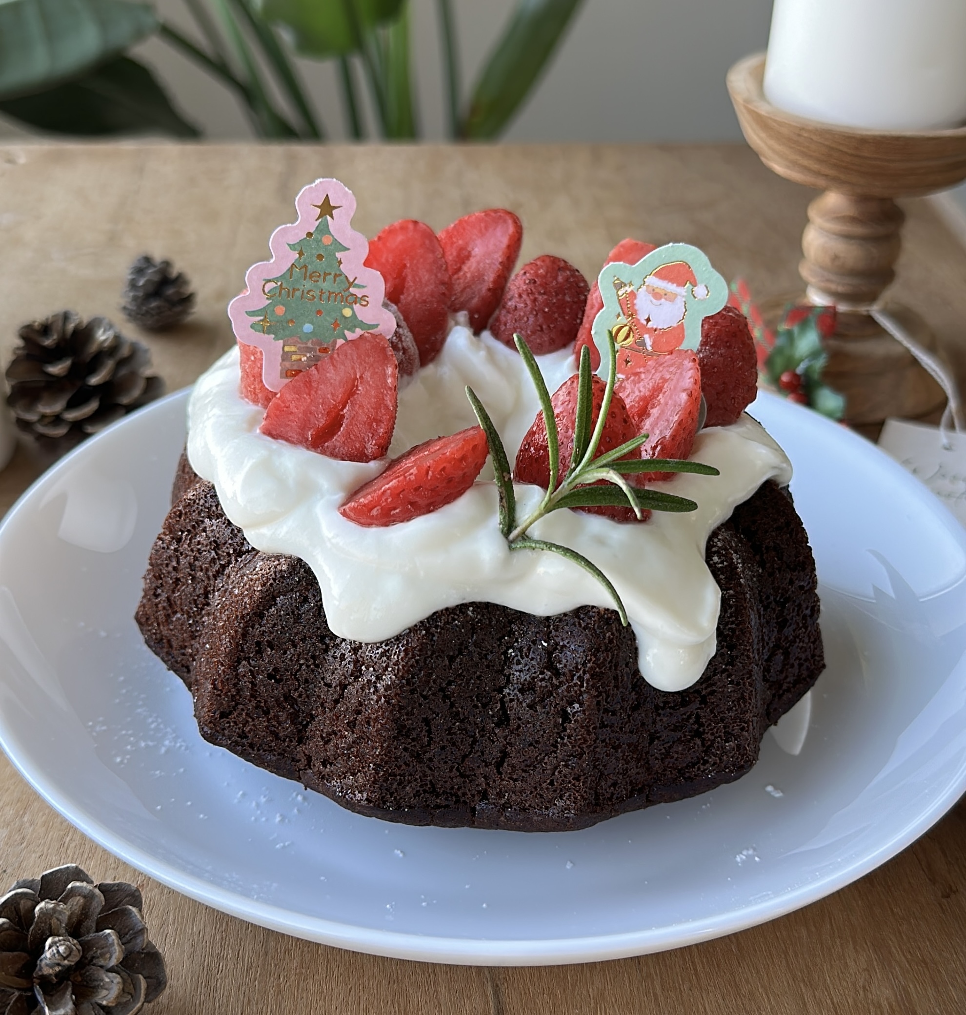 豆乳クリームとフルーツ、クリスマスピックをデコレーションしていきます