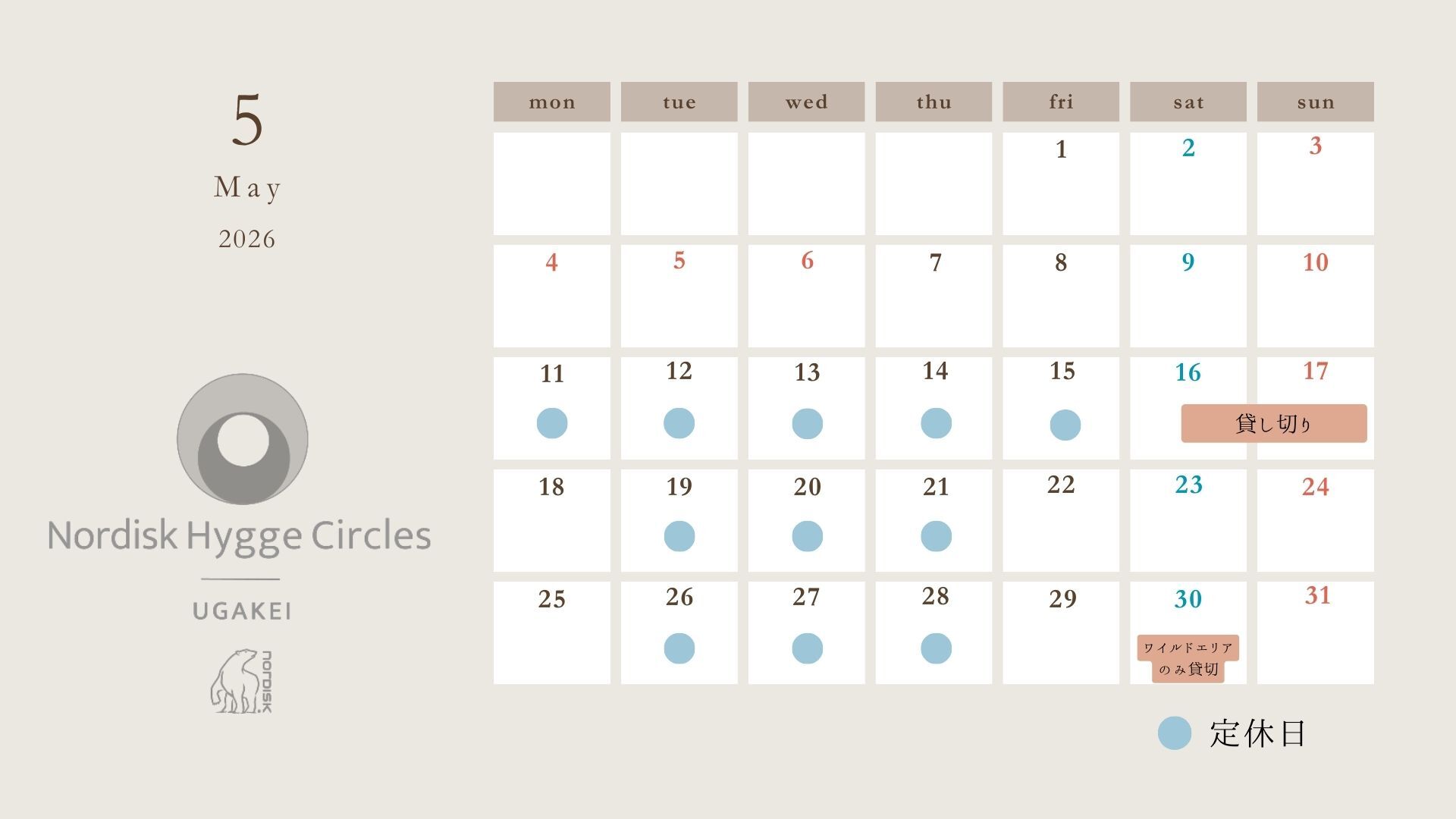 ※5月16日〜17日は貸切となりますので